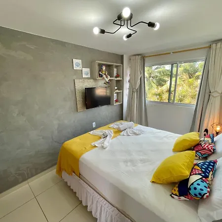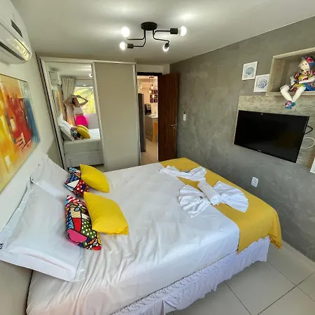 The 35 m^2 Flat Encanto Totalmente Projetado Vista Piscinas Porto de Galinhas is a 12-minute stroll from Shrimp Tecmares and features a terrace with a swimming pool. The nearest airport is Guararapes, situated 50 km from this 1-bedroom apartment.